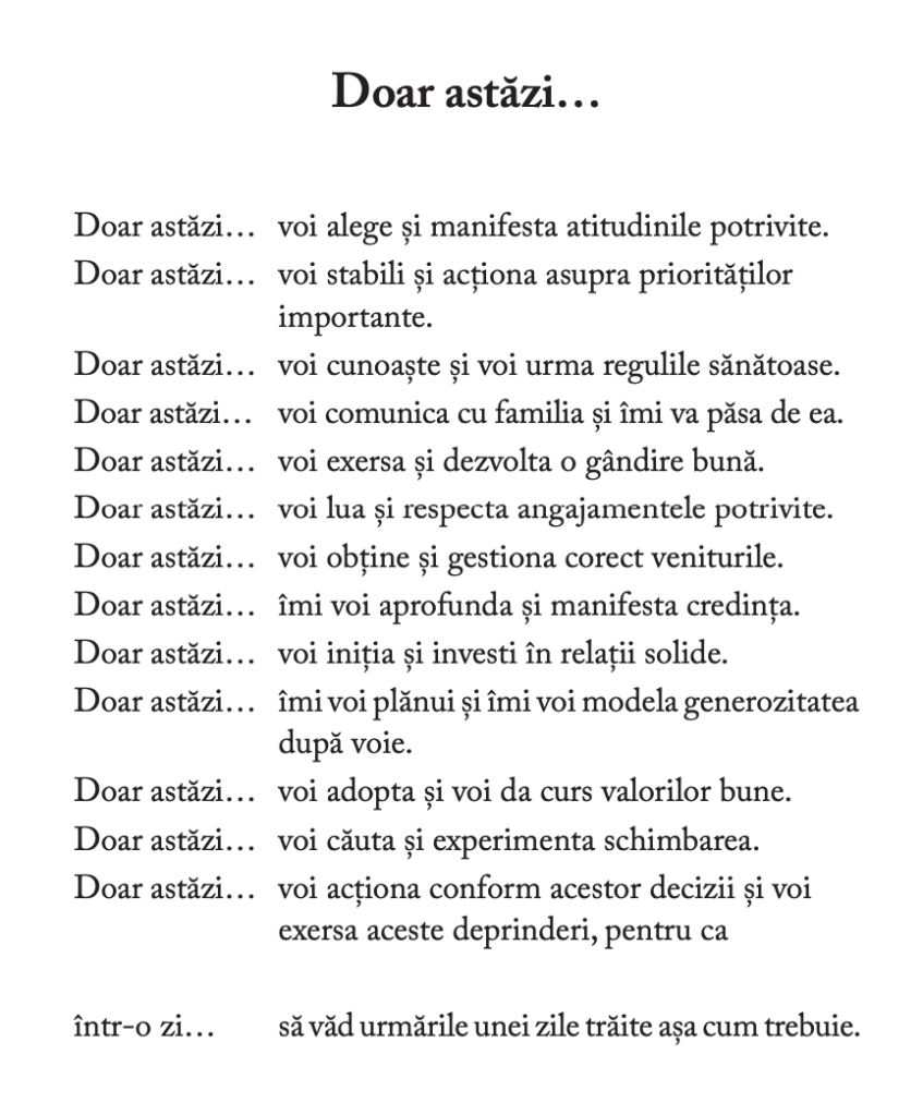 Ei bine, doar astăzi e de ajuns dacă te concentrezi pe ce dorești să rezolvi, să te bucuri și repeți în fiecare zi, doar azi …